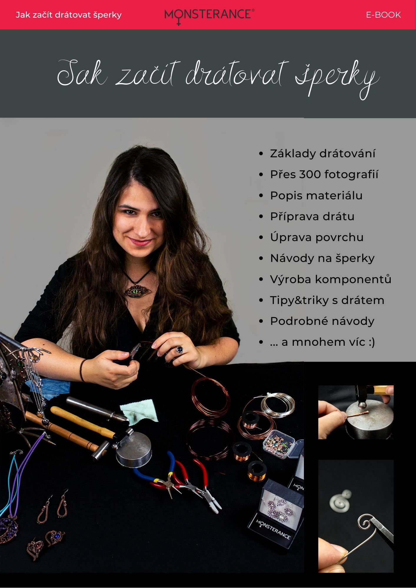 Monsterance (Anna Benešová) je drátenice, šperkařka a lektorka techniky drátování. Vyrábí originální drátované šperky a pravidelně vede kurzy drátování v Česku i v zahraničí. V oboru má přes 15 let zkušeností a prošla si dlouhou cestou od tradičního drátování hrnců a dekorací, přes tepané šperky až po propracované šperky s fantasy motivy, ve kterých kombinuje americký styl práce s drátem, tzv. wire-wrapping. Ve své nejnovější e-knize vám představí základní techniky z obou směrů drátování, prozradí tipy a triky pro práci s drátem a ukáže, jak si vyrobit komponenty na šperky tak, abyste si je už nikdy nemuseli kupovat.