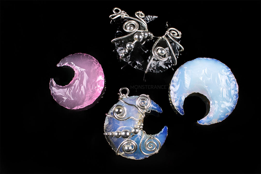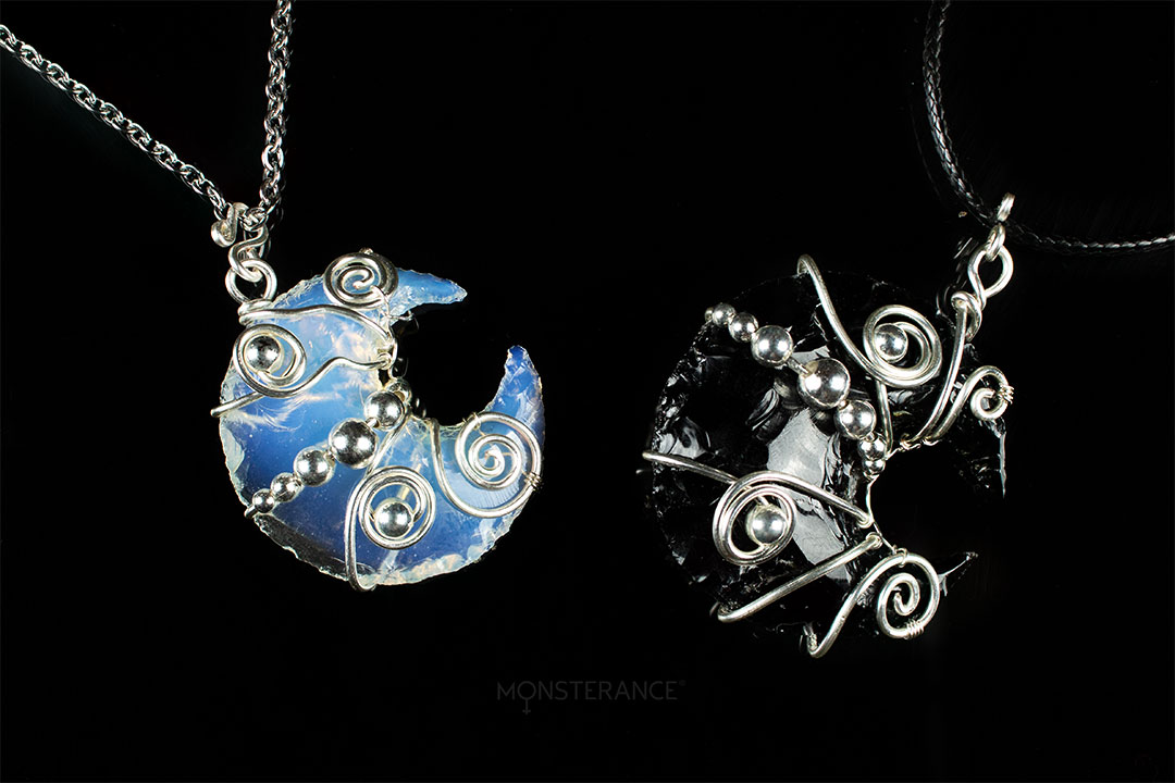 Prosím mějte na paměti, že se jedná o jedinečný a ručně vyráběný šperk, každý měsíc je díky ručnímu osekávání jiný, stejně tak se i drátený výplet může lehce lišit od toho na fotce. Prostě dostanete svůj originál :-).