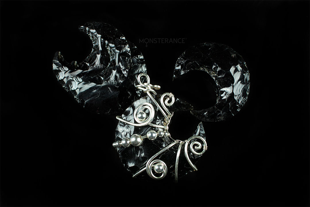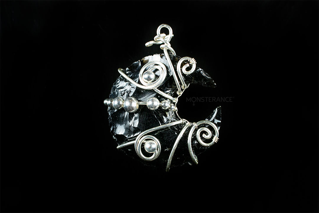Magický přívěsek z krásného černého obsidiánu, ručně lámaný tvar měsíce.