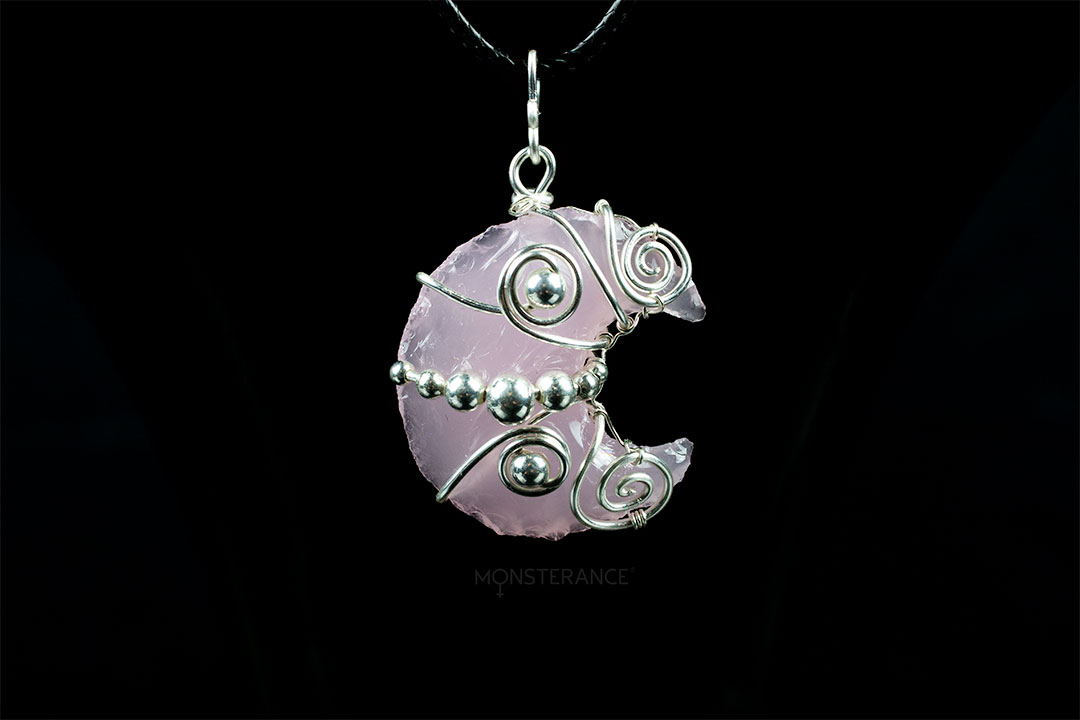 Přívěsek z opalitového měsíce upevněný pomocí technikou wire-wrappingu.